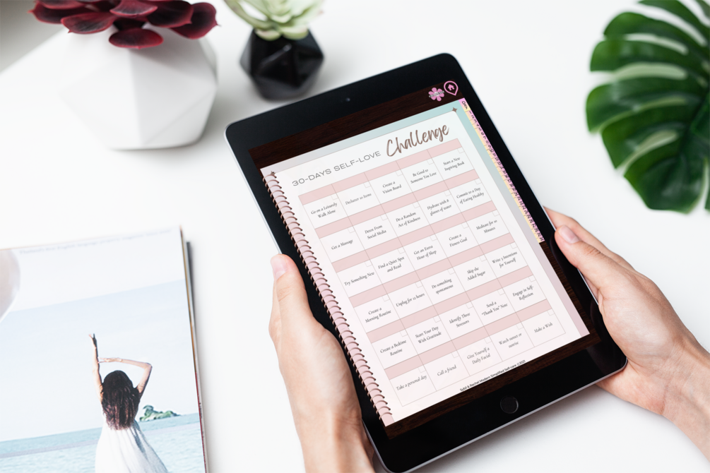 This 31 page beautiful journal will challenge you to love yourself in 30 different ways! It includes self-love stickers to plan the day's loving actions. You can then use your use your stylus or apple pen to journal about it.
